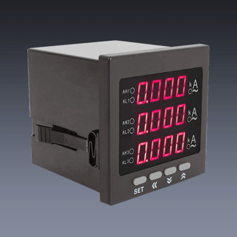 用于电线路中的三相电流同时进行实时测量,并以数字直读方式显示。用一只三相电流表即可完成三只普通单相电流表才能完成的A相电流、B相电流、C相电流的测量任务。