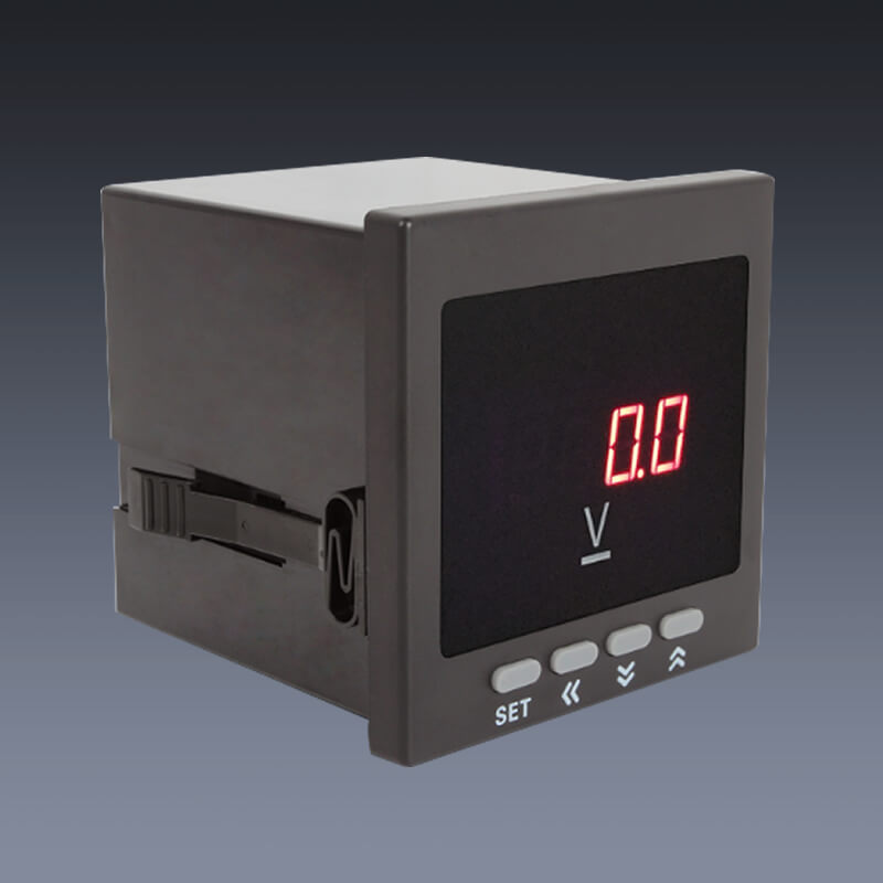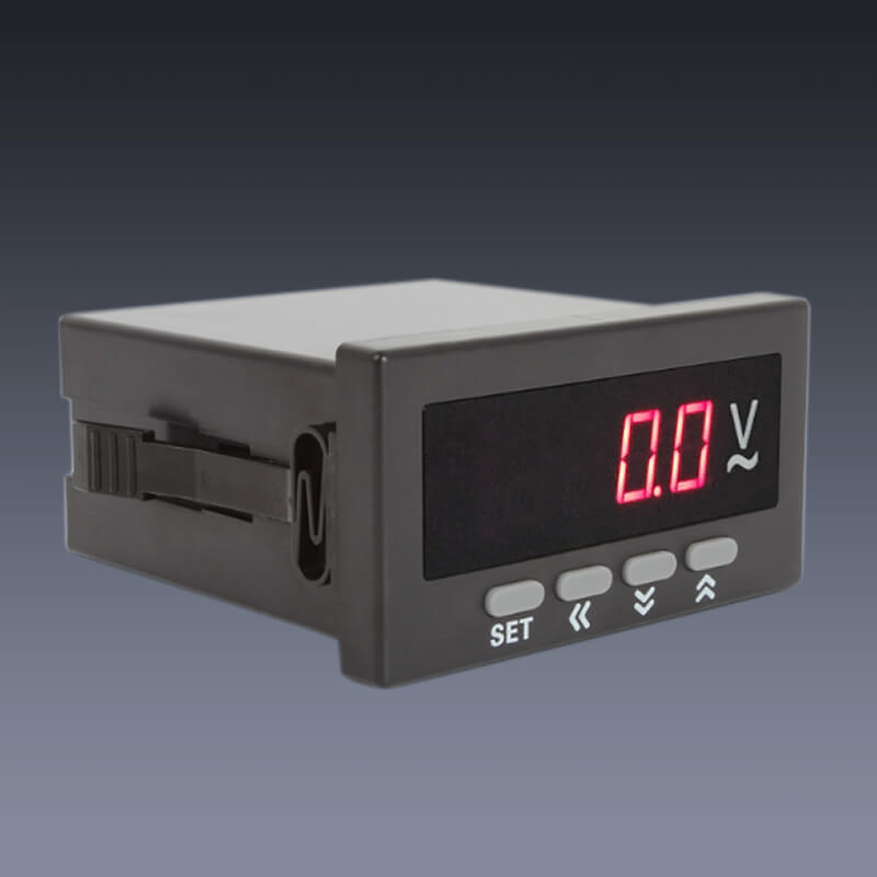 用于测量并以数字直读方式显示出电气线路中的电压值。仪表既可作为一般的数字电压表使用,也可以通过安装模拟量输出模块使其作为具有显示一次回路测量值功能的电压变送器使用,还可以选择RS485数字通信模块作为具有显示一次回路测量值功能的电压数据采集器使用,也可以选择继电器输出模块作为常规电压越线报警保护作用,也可以将三个功能模块同时选择,使其集测量、报警、变送、通讯等多种功能于一身。