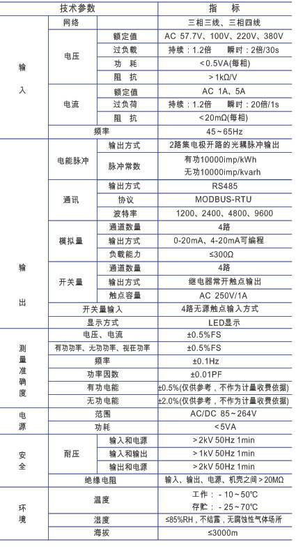 多功能网络电力仪表(以下简称仪表)专门针对供配电系统的电力监控需求设计制造。它能高精度的测量所有常用的电力参数, 如三相电压、三相电流、有功功率、无功功率、频率、功率因数、四象限电能等,显示方式见5.3。