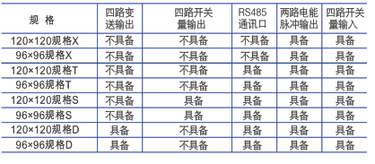仪表有多种扩展功能模块可供选择: 4路模拟量(0-20mA/4-20mA)输出可实现电量的变送输出功能;4路开关量输出可实现报警或遥控输出功能;一路RS485通讯接口, 采用MODBUS-RTU通讯协议,实现与PLC、工控计算机等通讯组网。用户可根据实际需求选择最为经济的功能配置。