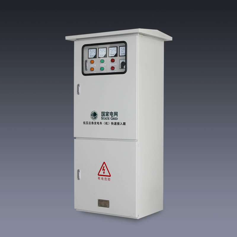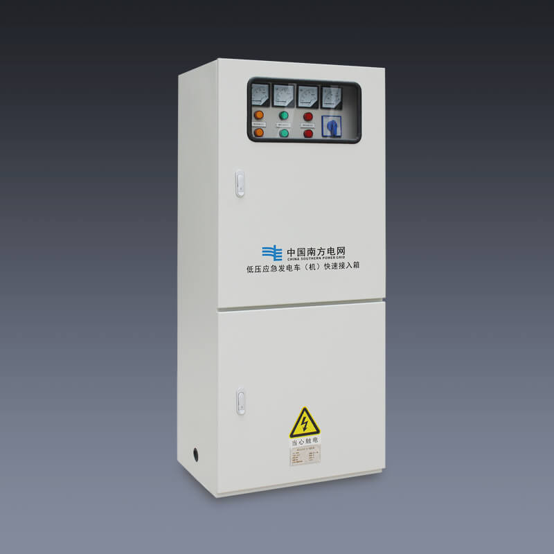 应急发电车(机)快速接入箱又称为发电车应急电源接入系统,利用现有的电气快速接头设备与微机智能化继电保护技术,所研发的一套应急电源快速接入装置。应急电源快速接入箱在一些抢修救灾、保护供电、临时性保护供电应用十分广泛。应急发电车快速接入装置箱采用快速连接器,基本在5分钟之内可以实现从供电端到客户端的快速连接,相比较传统的铜鼻子的连接方式更安全、快速、可靠。